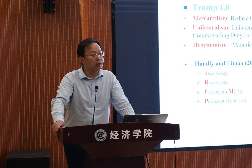 英国365集团网站石小霞副教授以“中美贸易战后我们何去何从”为主题,系统分析了当前中美关税政策及其影响。她指出,一方面,中国政府加速实施2万亿刺激方案,旨在提振消费增速,缓解经济下行压力;另一方面,中国积极推动经济转型,从传统的出口导向型经济逐步向以国内需求为主导的消费驱动型经济转变,稳步推进“中国2030市场”计划。此外,她就人民币汇率波动对出口竞争力的影响展开探讨,表明人民币适度贬值虽能在一定程度上减轻关税带来的成本压力,但其效果有限且存在引发贸易报复的潜在风险。