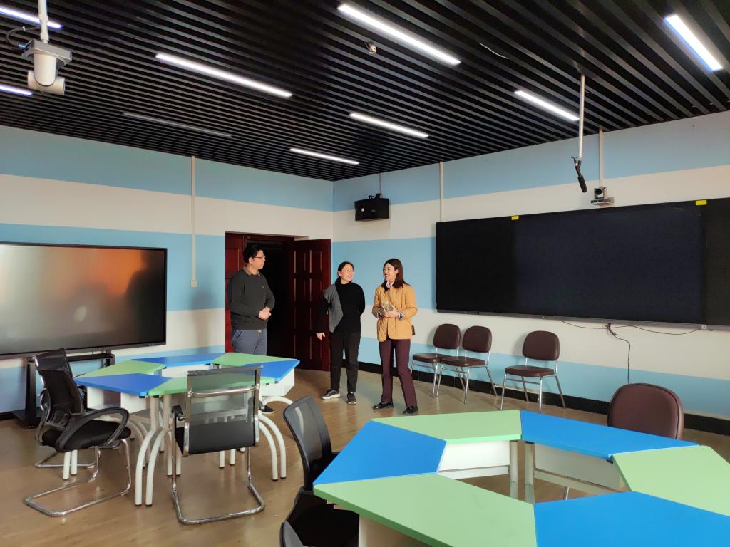 刘园美、李静宇等带领企业一行实地察看了公司的办学环境,参观了公司T301演播厅、员工实习实践实训中心、智慧教室、研究生工作站等。