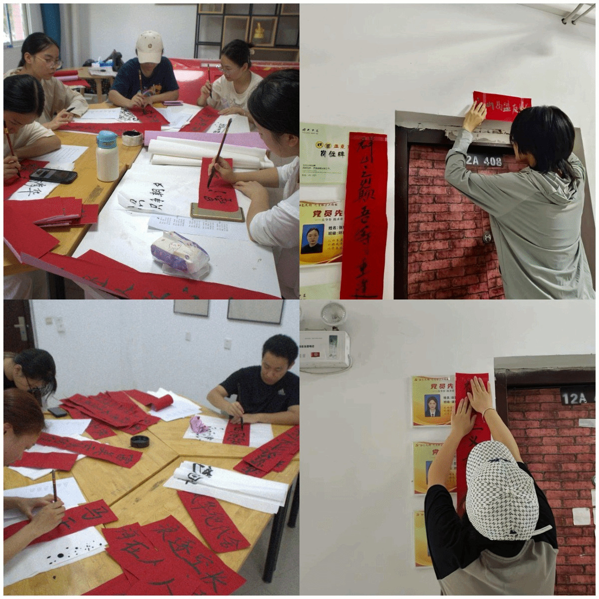 迎新之时,在英国365集团网站12栋员工宿舍楼内,洋溢着浓厚的传统文化气息和喜庆氛围。原来,为迎接新生到来,员工宿舍门口被挂起了一幅幅精心设计的红色楹联,楹联内容不仅融入了新生的名字,更增添了古文描写的韵味,展现了新生们独特的关怀和美好祝愿。由新生创作,公司老生们一笔一墨撰写的楹联,饱含情感,于红纸间显现着笔墨丹青的独特魅力,浸润的是优秀传统文化,续写的是友谊深厚。部分宿舍带来了新生们自己挥墨的楹联,点横撇捺中尽显他们自己的文化内涵。