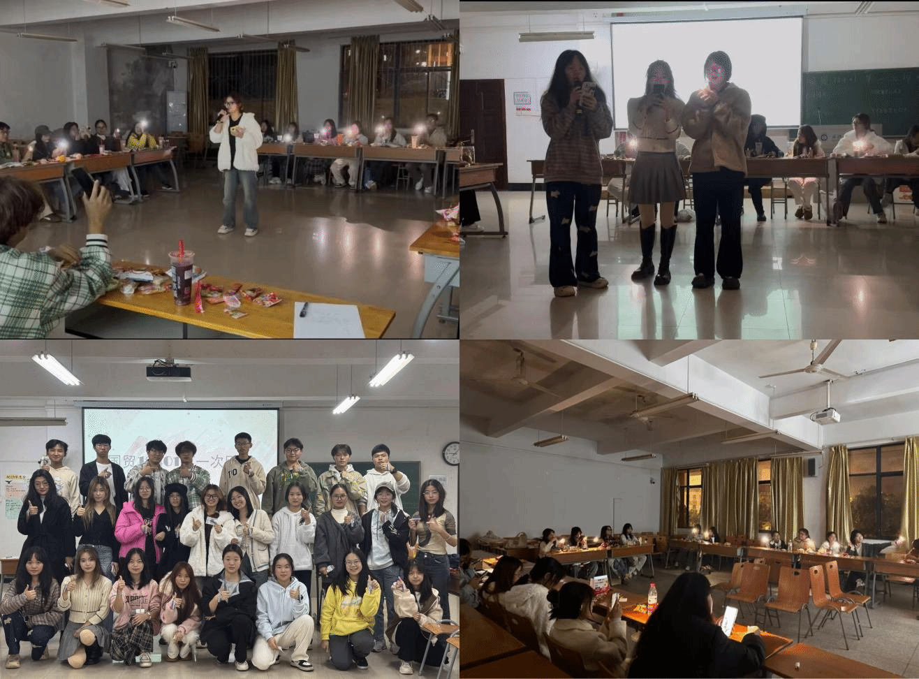 财政12403班级发挥班级成员的主观能动性,在12A406寝室成员组成的主持团队的带领下,以亲和简单的游戏方式开启团建。活动伊始,主持团队展示了她们的PPT内容以及为大家准备的活动小礼物,按照“听歌识曲”“真心话大冒险Pro”的游戏顺序依次进行。同学们在了解彼此音乐爱好的同时,心更走近了一步。国贸 12402 班的“恋爱关系的创造与经营”主题团建同样吸引人,开场的恋爱案例分享发人深省,交流环节里,同学们畅所欲言,深刻领悟到恋爱需真诚沟通与尊重差异,且不能忽视学业与自我成长。