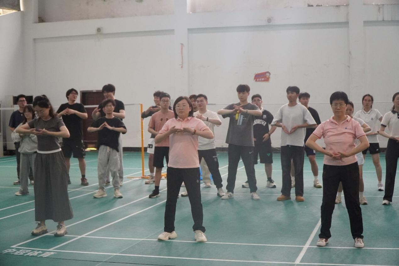 趣味比赛结束,师生共练八段锦。伴随着悠扬的乐声,全体师生精神抖擞,列阵如棋,动作行云流水、刚柔并济。从“左右开弓似射雕”的刚健,到“摇头摆尾去心火”的舒展,师生们充分展现了八段锦“松紧结合、动静相宜”的精髓,于一招一式间既传承了中华优秀传统文化,又为活动增添健康底色。活动最后,老师们为毕业生发放纪念品。