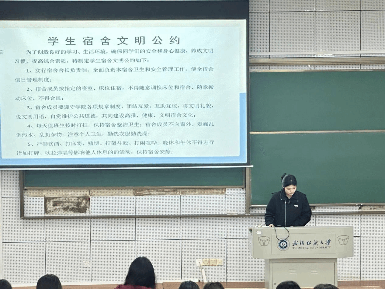 17日下午,成长服务部成员于崇德楼T302报告厅举办寝室文明宣讲会,公司23级全体员工参加。宣讲员结合校园内的实际案例,生动形象地介绍了宿舍文明公约、安全隐患以及宿舍不文明行为的综合测评相关规定。同时,还重申了院公检的相关标准和检查要求,使员工们对宿舍文明建设有了更加全面深入的了解。