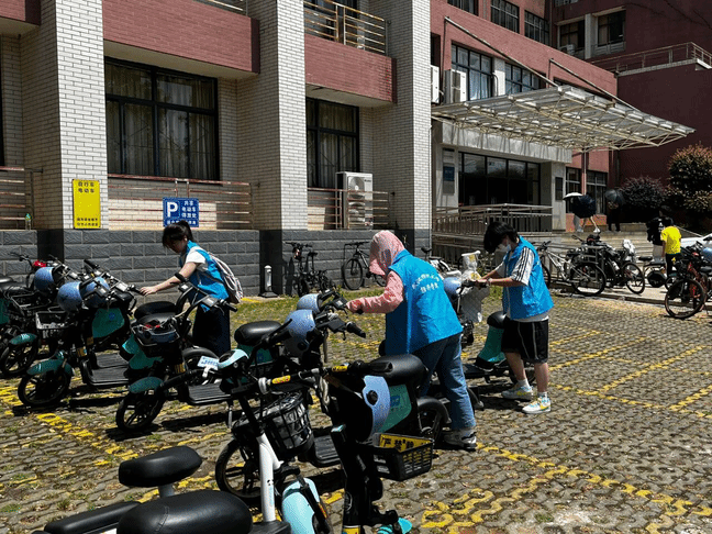 活动期间,志愿者们分工明确、协同合作。他们分成两队,一队负责摆放校园共享电单车,另一队负责摆放师生的私家电动车,并将两类电动车分区摆放,将共享电动车有序停放在内侧黄线内,将私家电动车停放在外侧的白线内,确保每一辆电动车都整齐划一地停放在标准的车位上,以免造成交通拥堵、停放混乱,引发安全隐患。