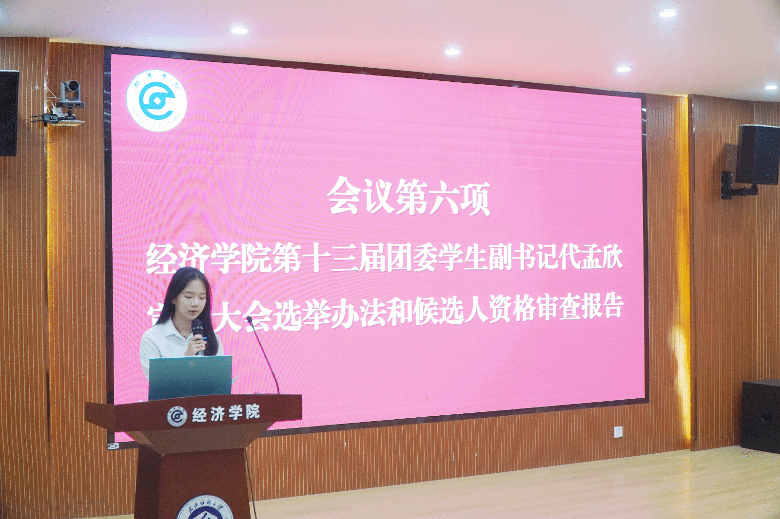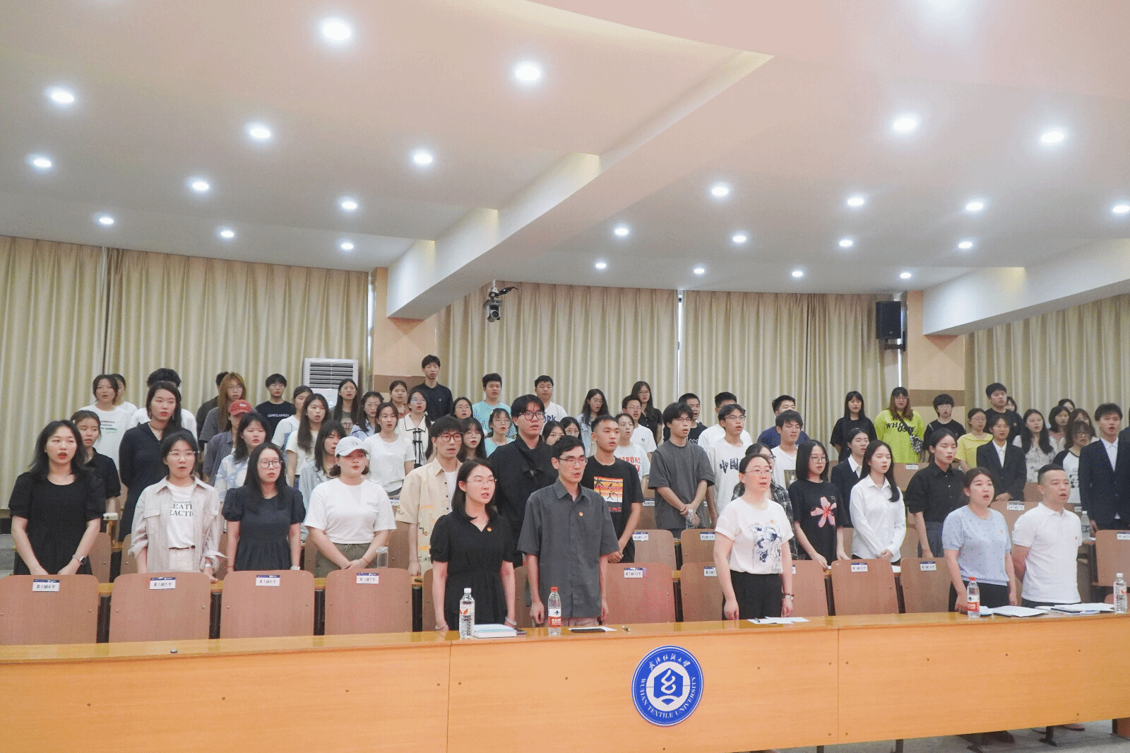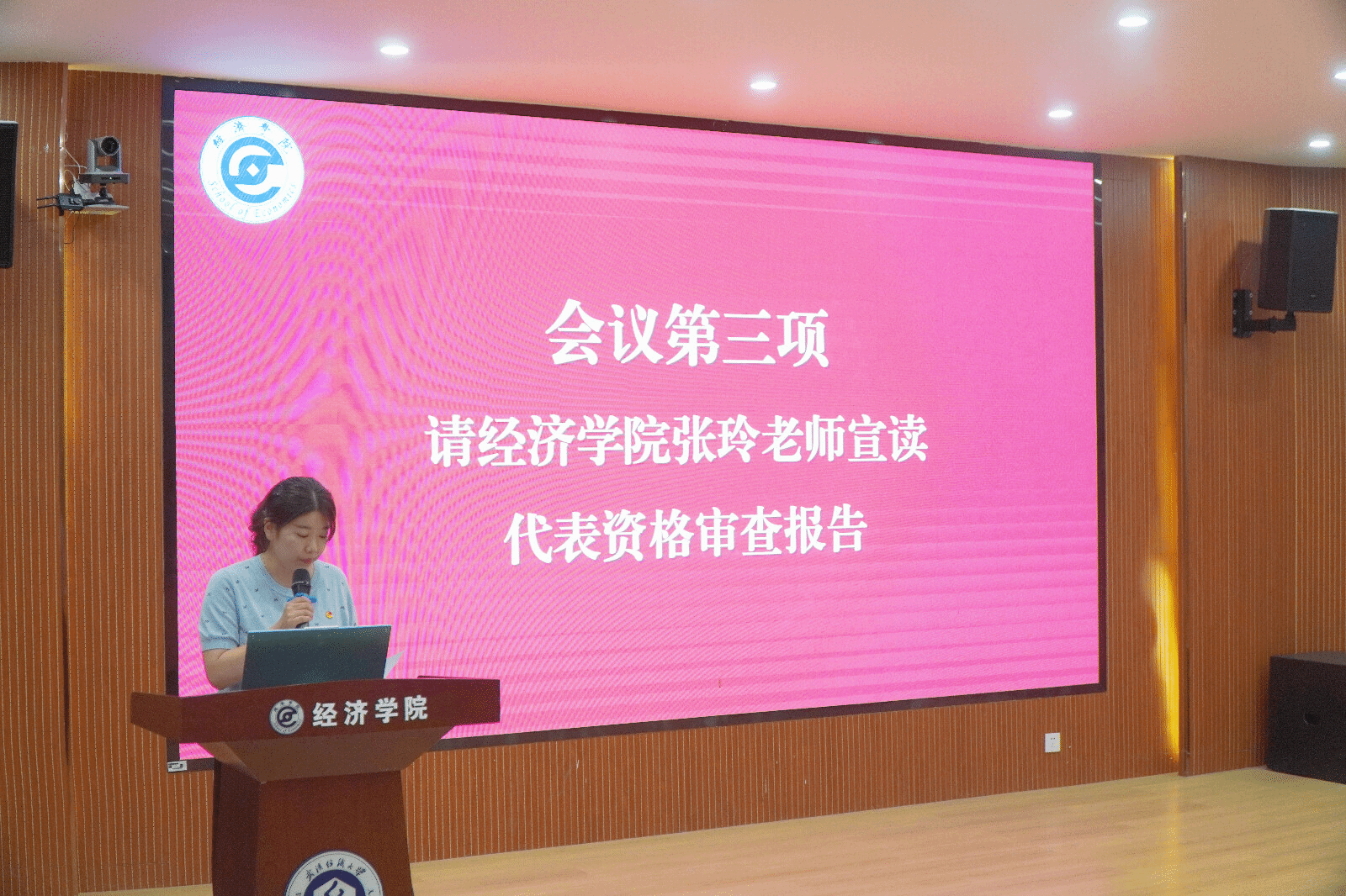 会议伊始,全体师生奏唱国歌。张玲宣读代表资格审查报告,她表示全体员工应继续夯实团学组织、拓展团属阵地、创新团建活动。