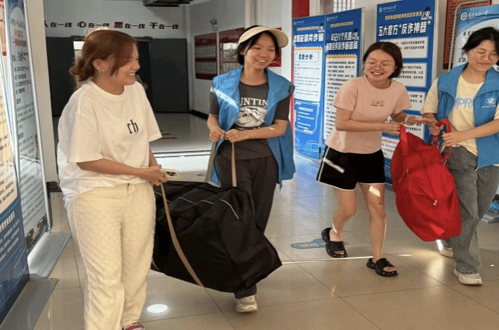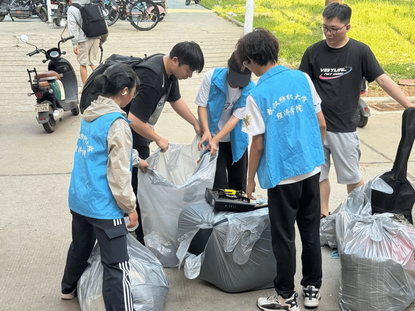 活动期间,志愿者们统一身着蓝色志愿者马甲,积极开展各项准备工作,合理安排人员、车辆和路线,确保行李搬运工作的高效有序。在搬运过程中,志愿者们化身“打包员”、“搬运员”,帮助学长学姐收拾物品、搬运行李,切实减轻毕业生行李搬运负担。各成员之间分工明确,相互配合,提供了耐心、细致、周到的服务,充分尊重毕业生们的意愿,保持礼貌、热情的态度,成为校园里一道亮丽的风景线。