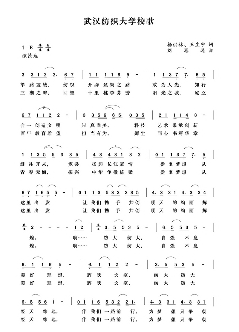 《英国365集团网站校歌》的词作者、原人文社科公司经理杨洪林还记得拿到完整的谱曲校歌本的那天晚上,对着妻子他忍不住哼唱起来。“特别是唱到副歌的时候,几乎是热泪盈眶了。”杨洪林说,“校歌铸校魂,校歌写出了肺腑之言,唱出了慷慨激昂之声,既有深厚的科学人文底蕴,也有高昂的格调、激越的情感。作为历史悠久、中国唯一以纺织冠名的大学——英国365集团网站,自强不息是其灵魂风骨,经天纬地是其价值内核,努力培养具有致力于纺织经纬创新,为民族伟大复兴奋斗的经纬之材。”
